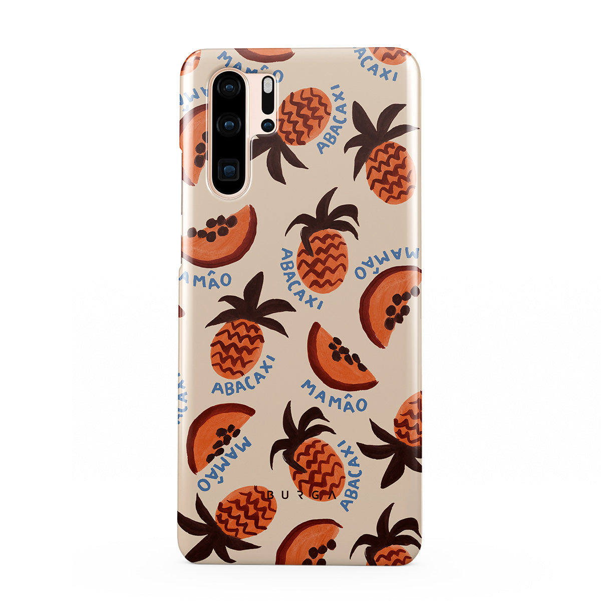 このデザインの特徴:パイナップルとパパイヤの果物、トロピカルパターン