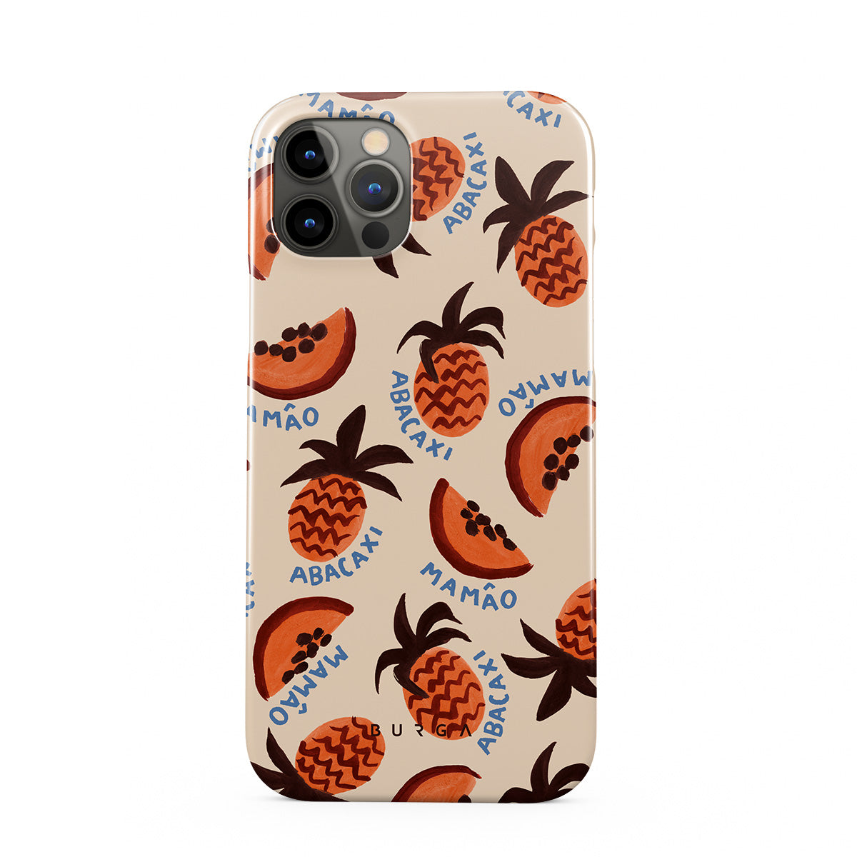 このデザインの特徴:パイナップルとパパイヤの果物、トロピカルパターン