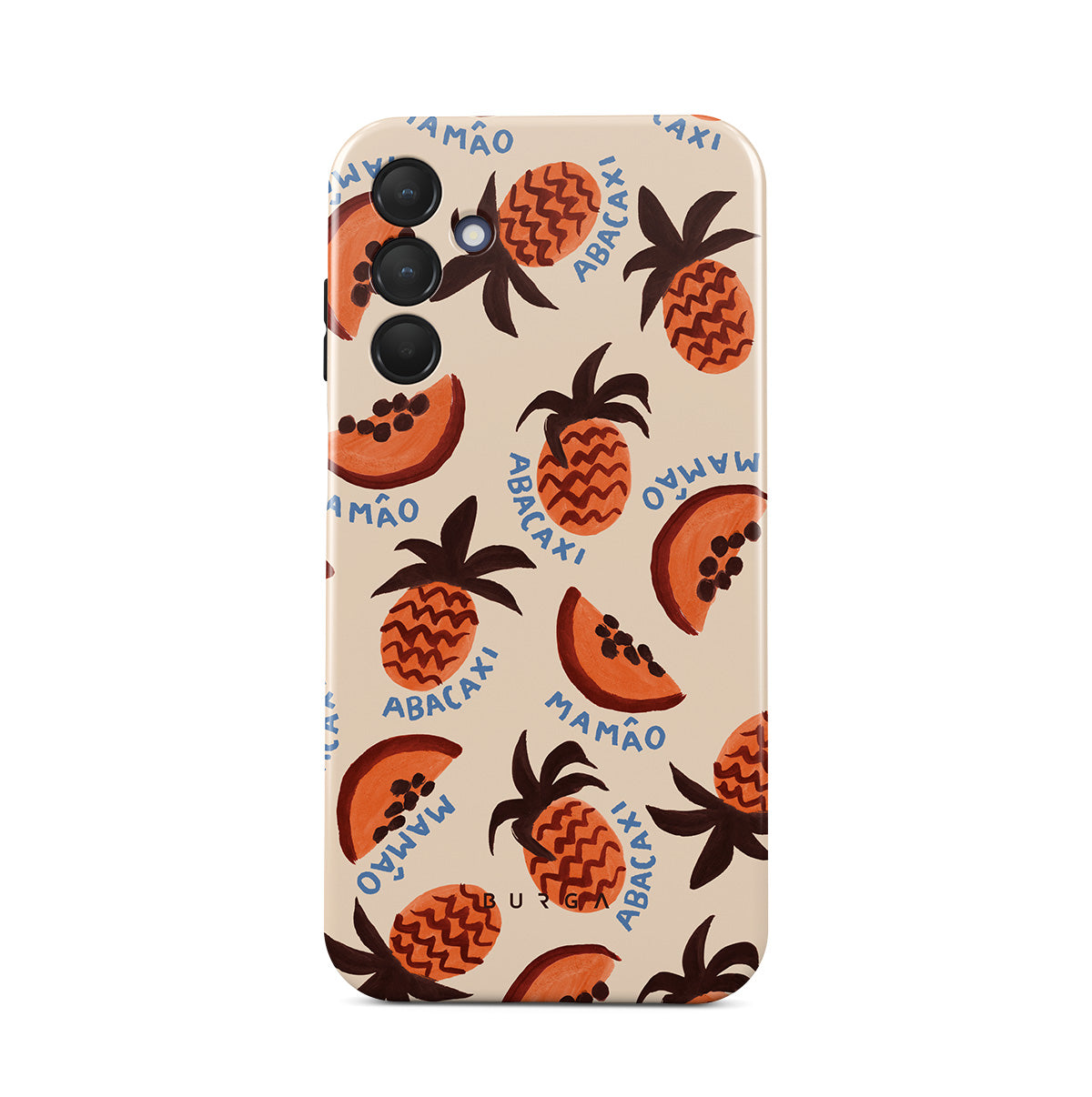 このデザインの特徴:パイナップルとパパイヤの果物、トロピカルパターン