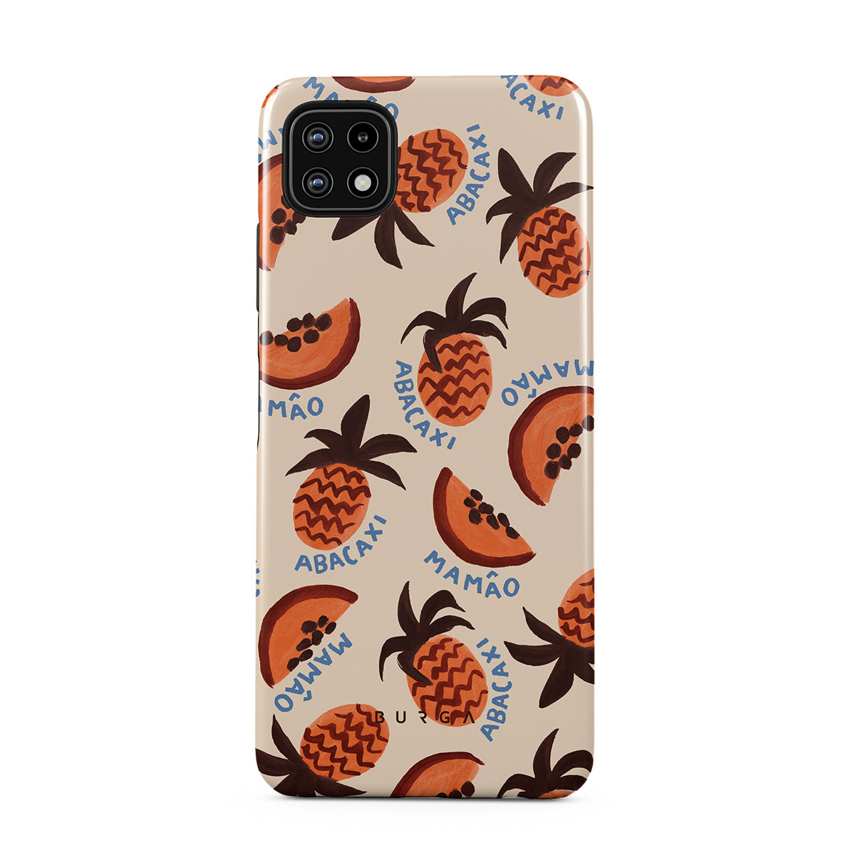 このデザインの特徴:パイナップルとパパイヤの果物、トロピカルパターン
