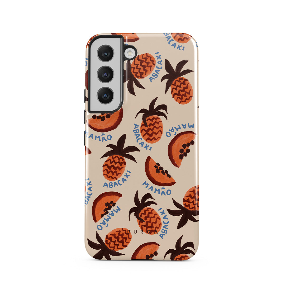 このデザインの特徴:パイナップルとパパイヤの果物、トロピカルパターン
