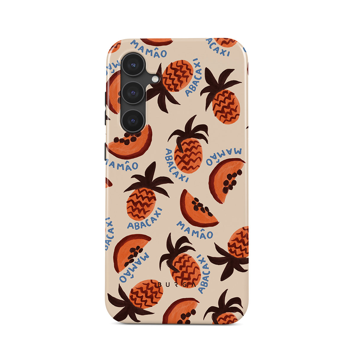 このデザインの特徴:パイナップルとパパイヤの果物、トロピカルパターン