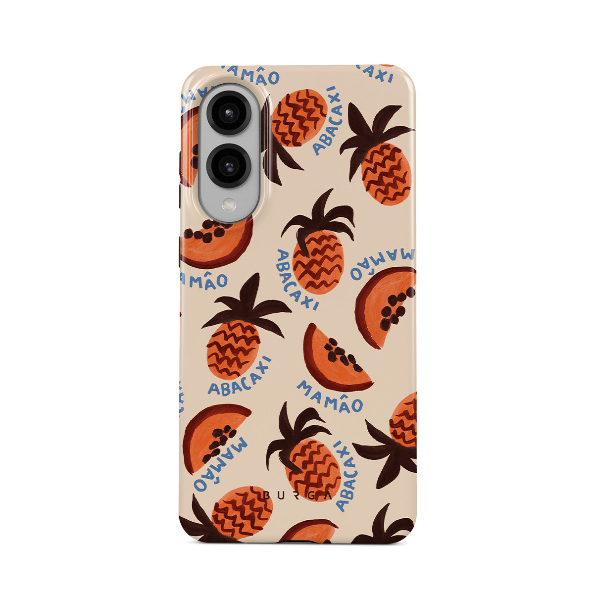 このデザインの特徴:パイナップルとパパイヤの果物、トロピカルパターン
