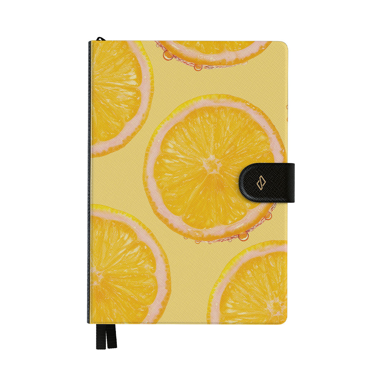 日付が書かれていないミニマリストなデザインで、手帳・スケジュール帳・ダイアリーとして使えます。表紙のハードカバーには、心地よい手触りのヴィーガンサフィアーノレザーを使用。スリムな磁気べえると付きの頑丈な手帳で、コーヒーをこぼしたり、うっかり手帳を落としたりしても安心です。