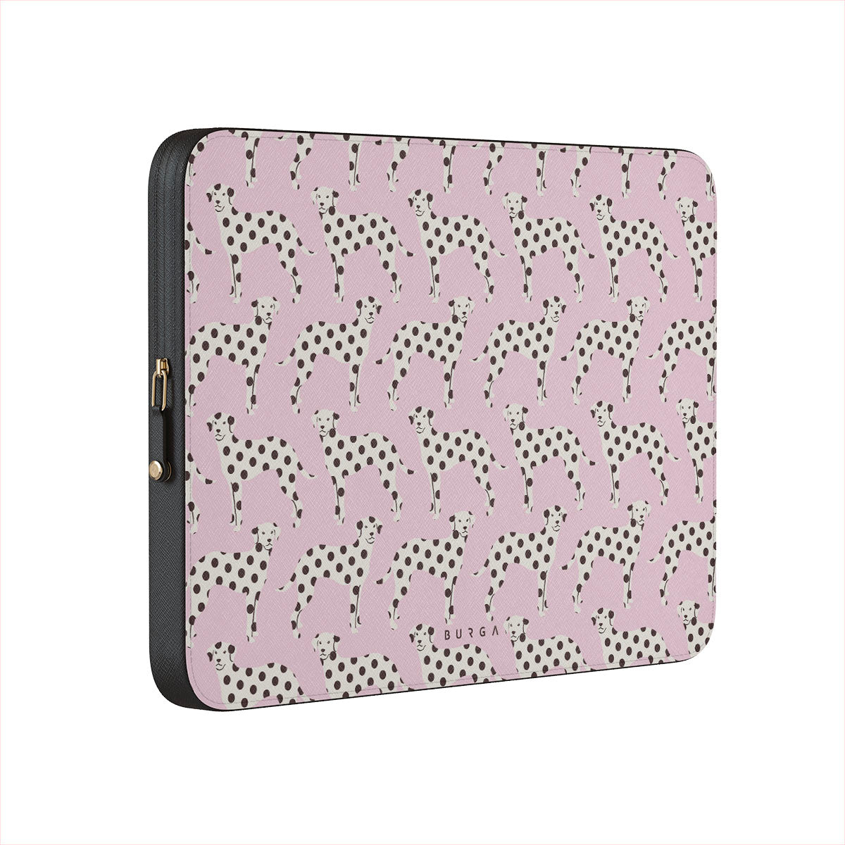 このデザインの特徴:ベビーピンクの背景に描かれたダルメシアンの犬が特徴です。