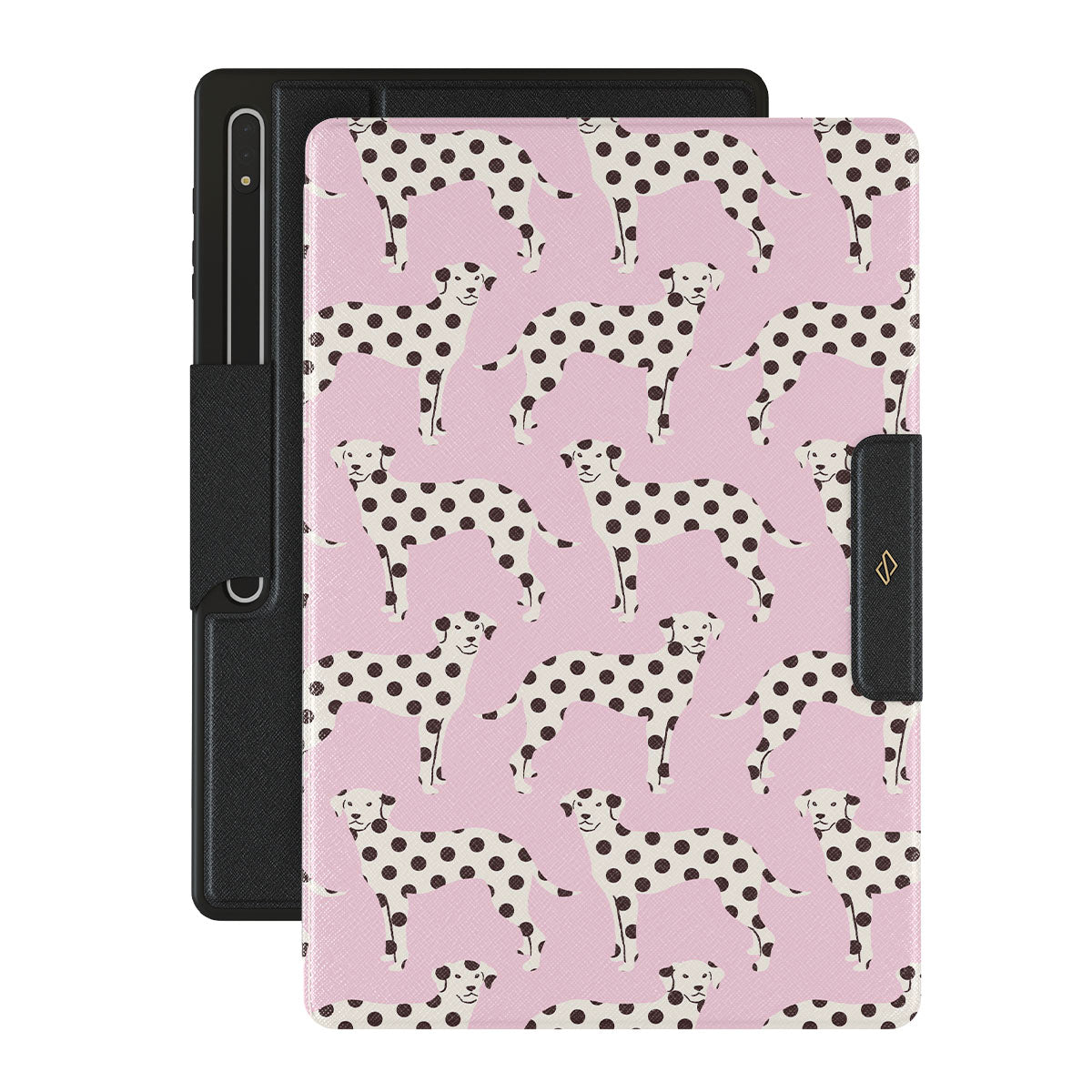このデザインの特徴:ベビーピンクの背景に描かれたダルメシアンの犬が特徴です。