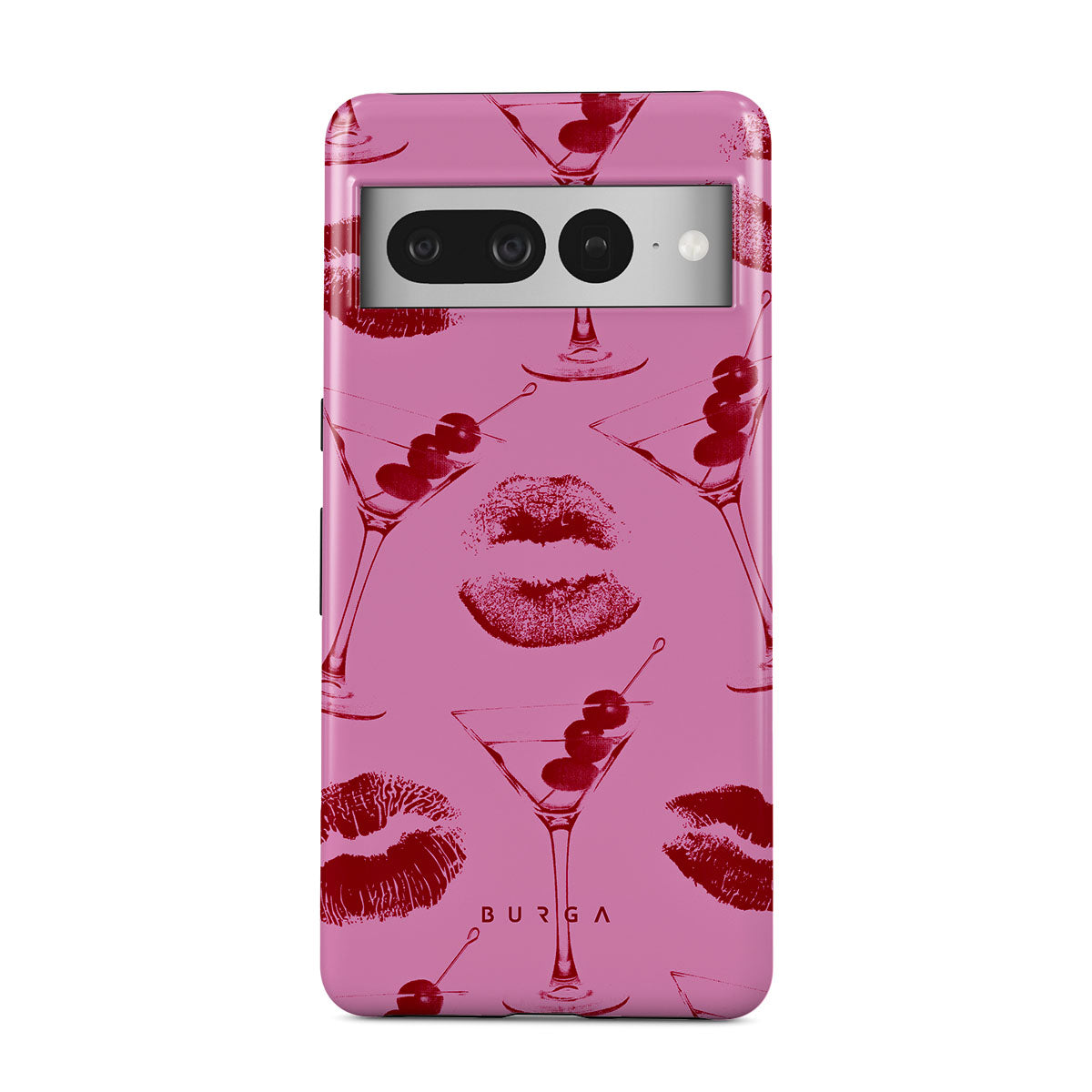 このデザインの特徴: 赤い唇、キス、カクテル グラス、マティーニ