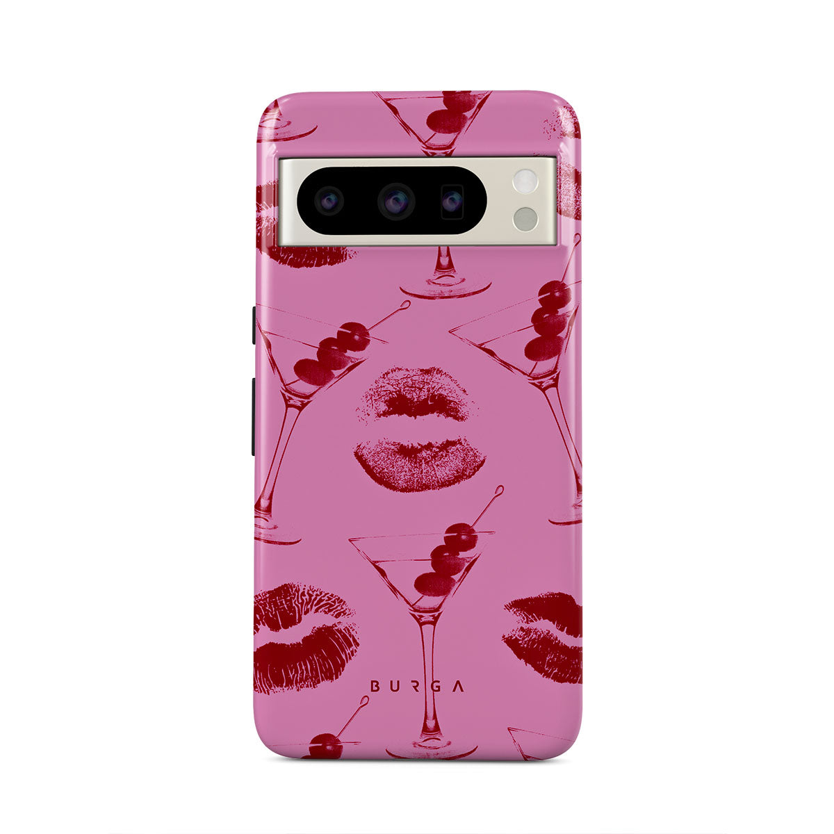 このデザインの特徴: 赤い唇、キス、カクテル グラス、マティーニ