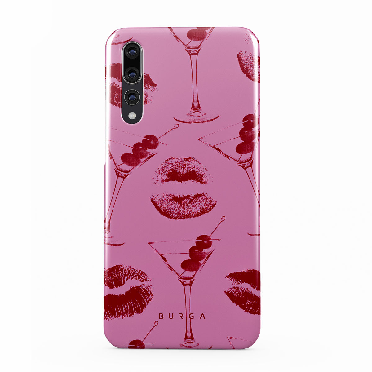 このデザインの特徴: 赤い唇、キス、カクテル グラス、マティーニ