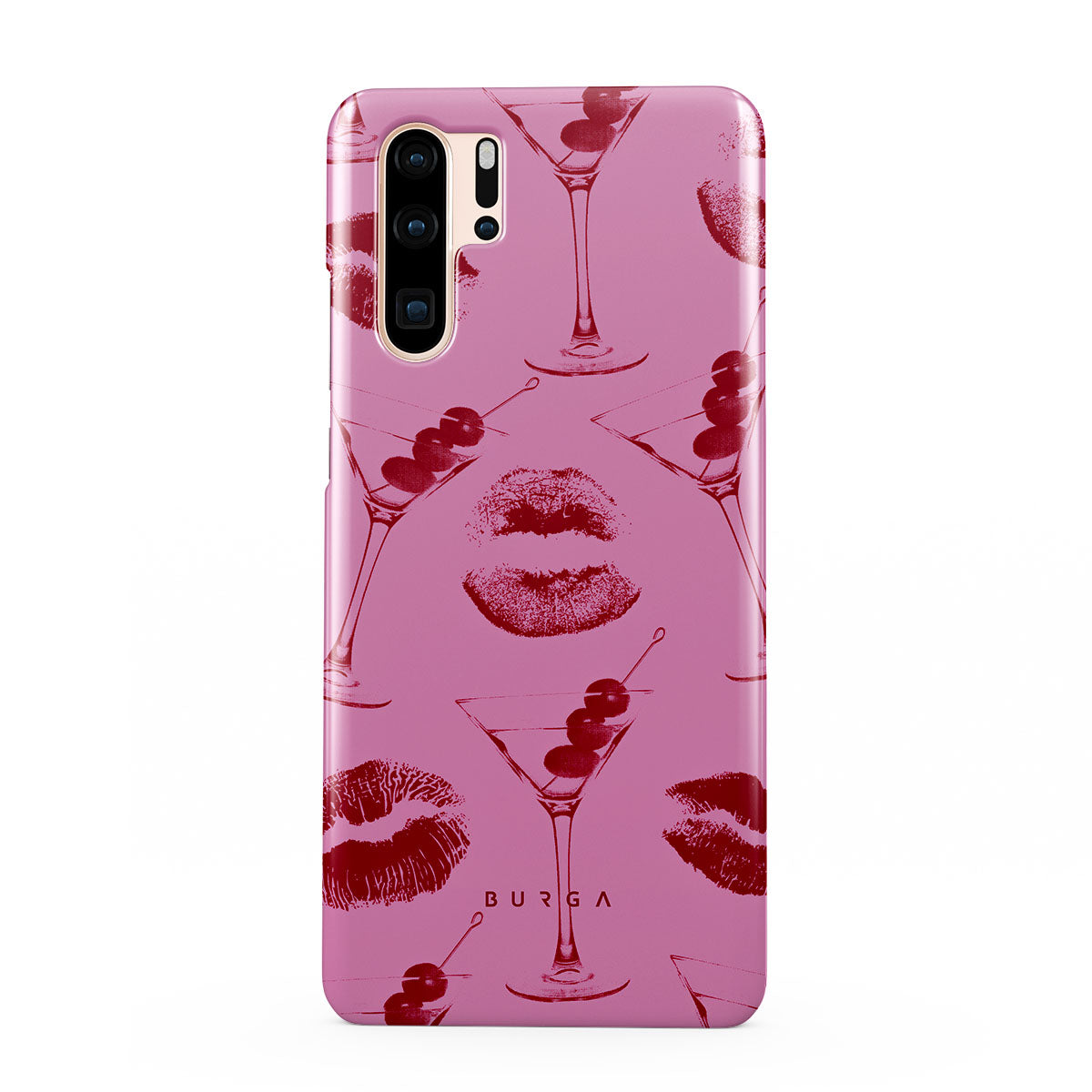このデザインの特徴: 赤い唇、キス、カクテル グラス、マティーニ