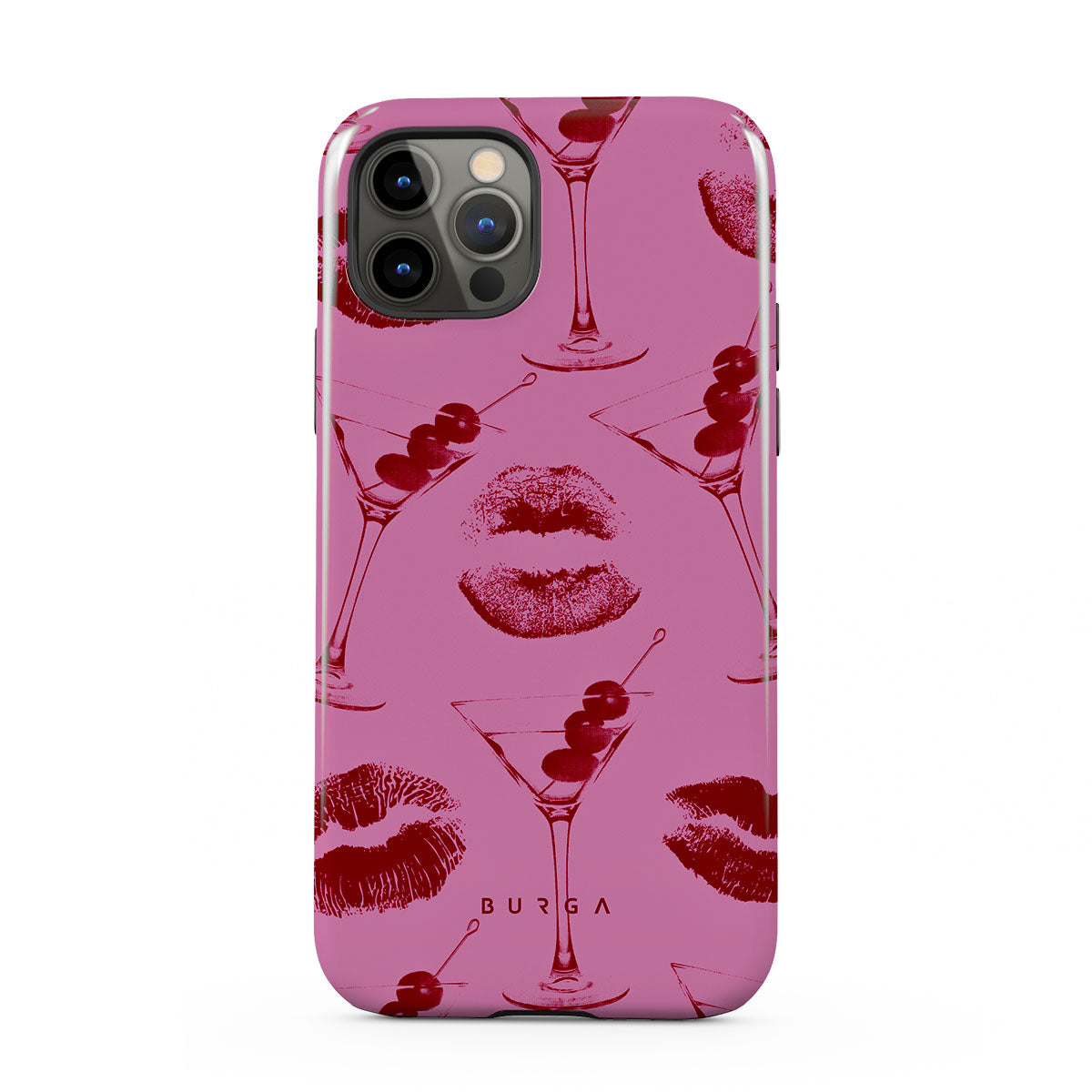 このデザインの特徴: 赤い唇、キス、カクテル グラス、マティーニ