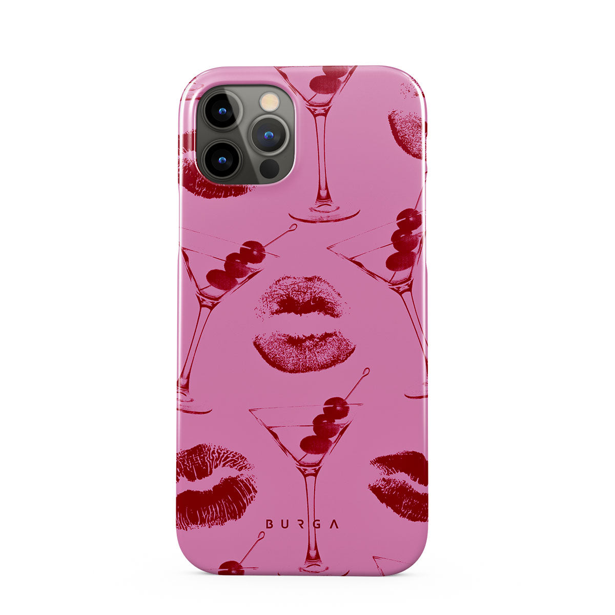 このデザインの特徴: 赤い唇、キス、カクテル グラス、マティーニ