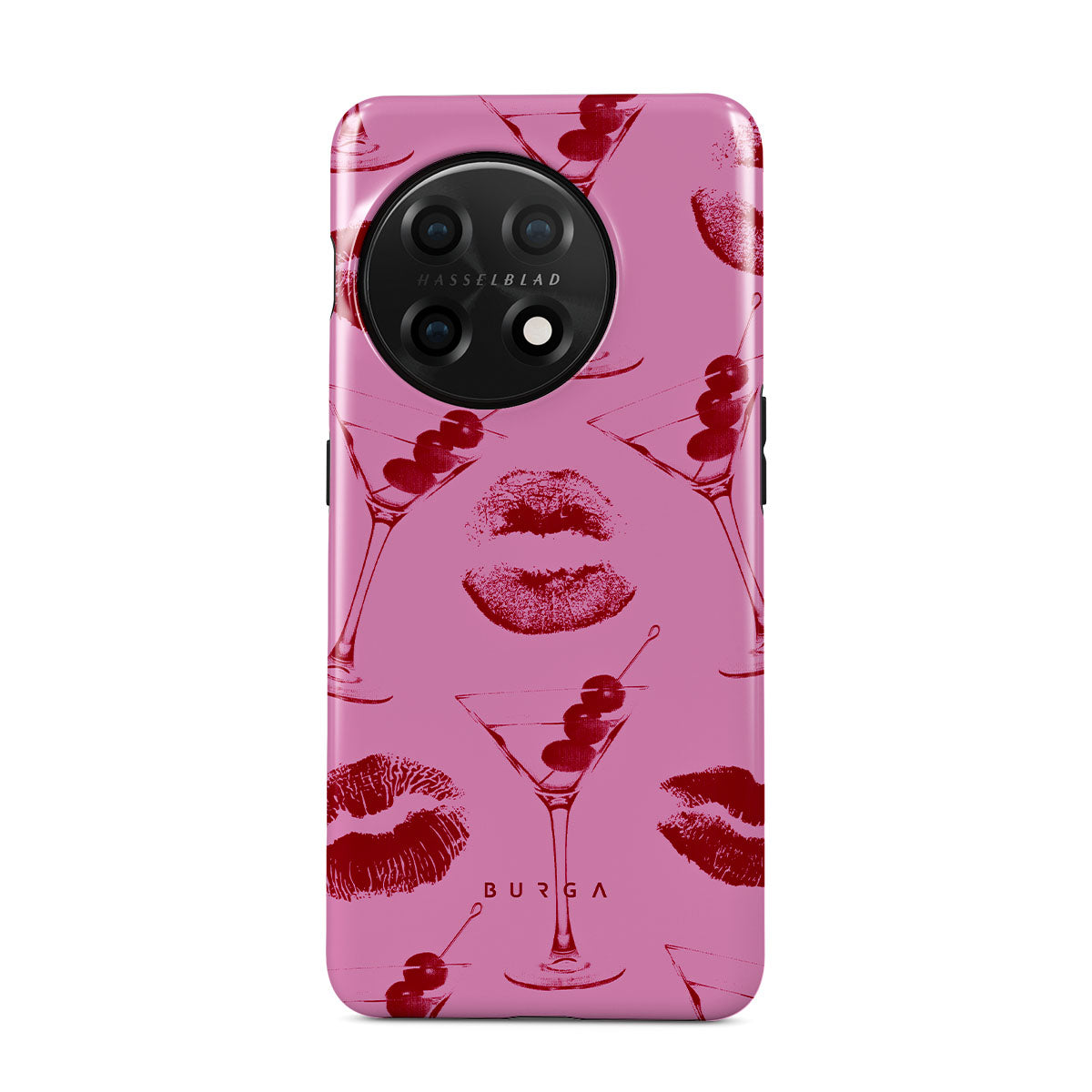 このデザインの特徴: 赤い唇、キス、カクテル グラス、マティーニ
