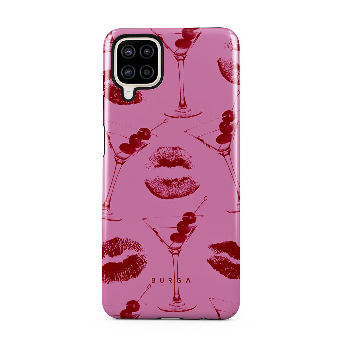 このデザインの特徴: 赤い唇、キス、カクテル グラス、マティーニ