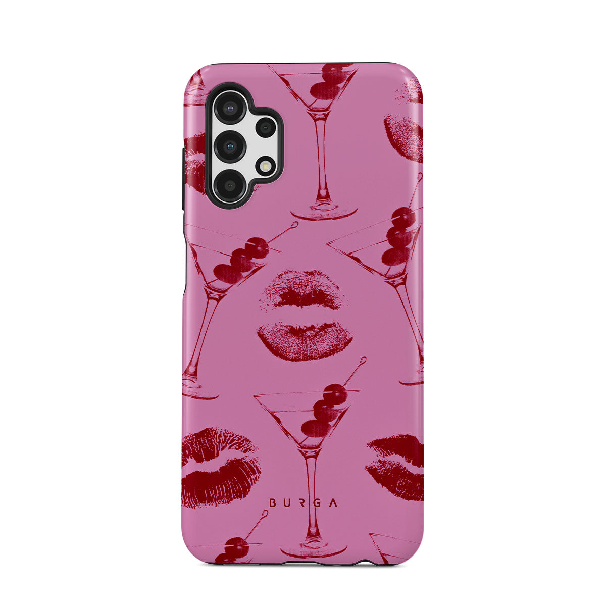 このデザインの特徴: 赤い唇、キス、カクテル グラス、マティーニ