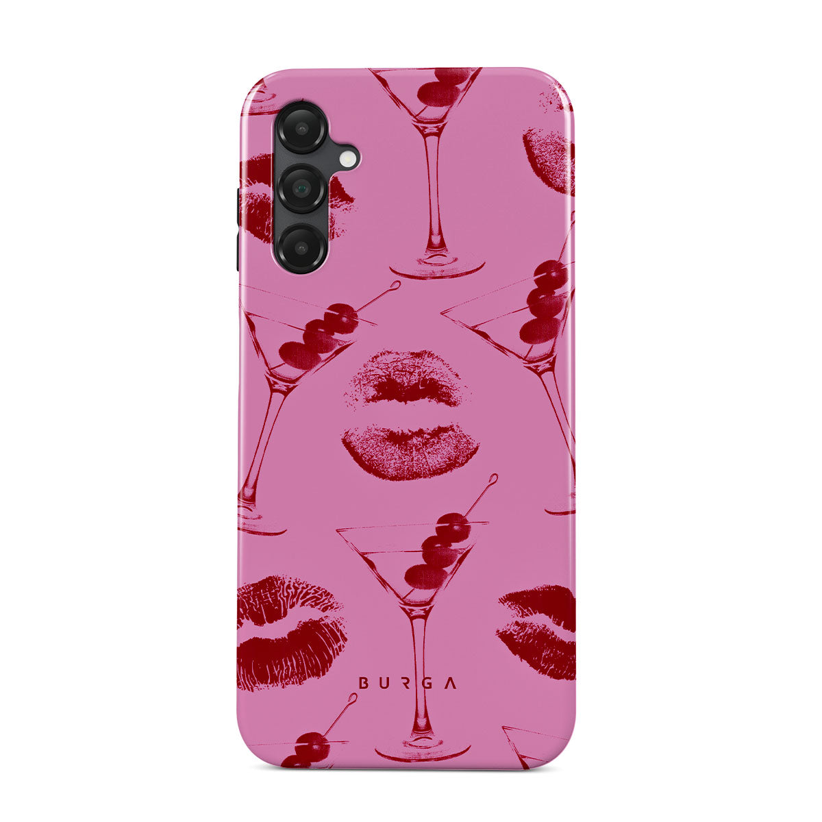 このデザインの特徴: 赤い唇、キス、カクテル グラス、マティーニ