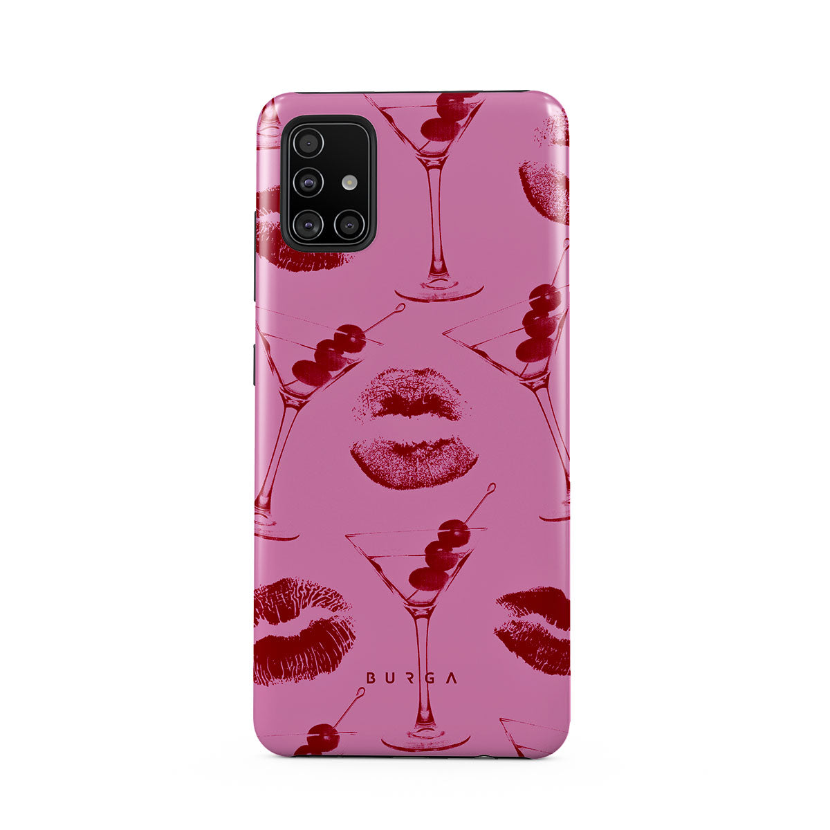 このデザインの特徴: 赤い唇、キス、カクテル グラス、マティーニ
