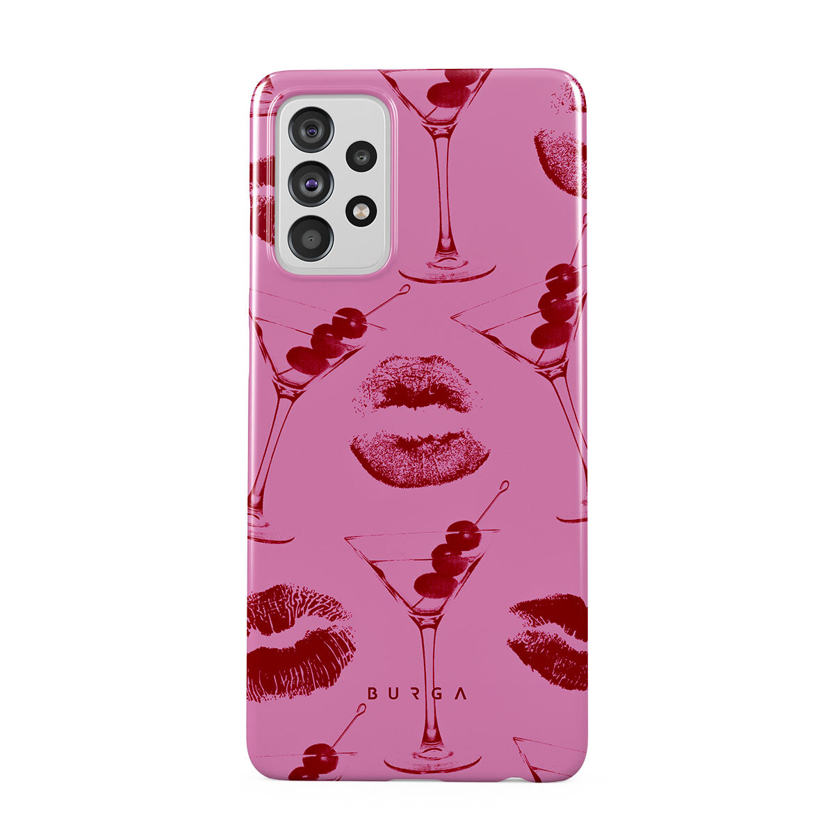 このデザインの特徴: 赤い唇、キス、カクテル グラス、マティーニ