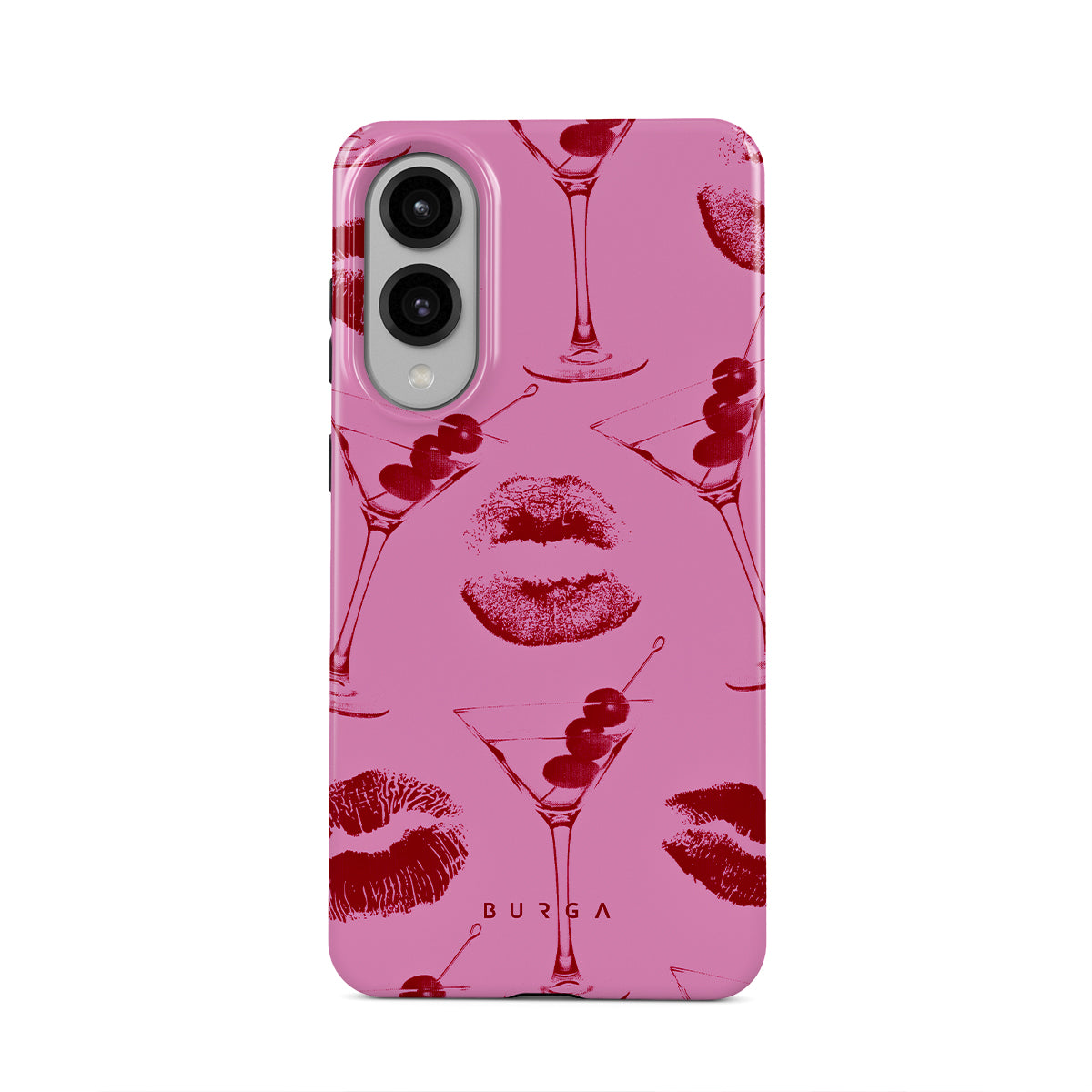 このデザインの特徴: 赤い唇、キス、カクテル グラス、マティーニ