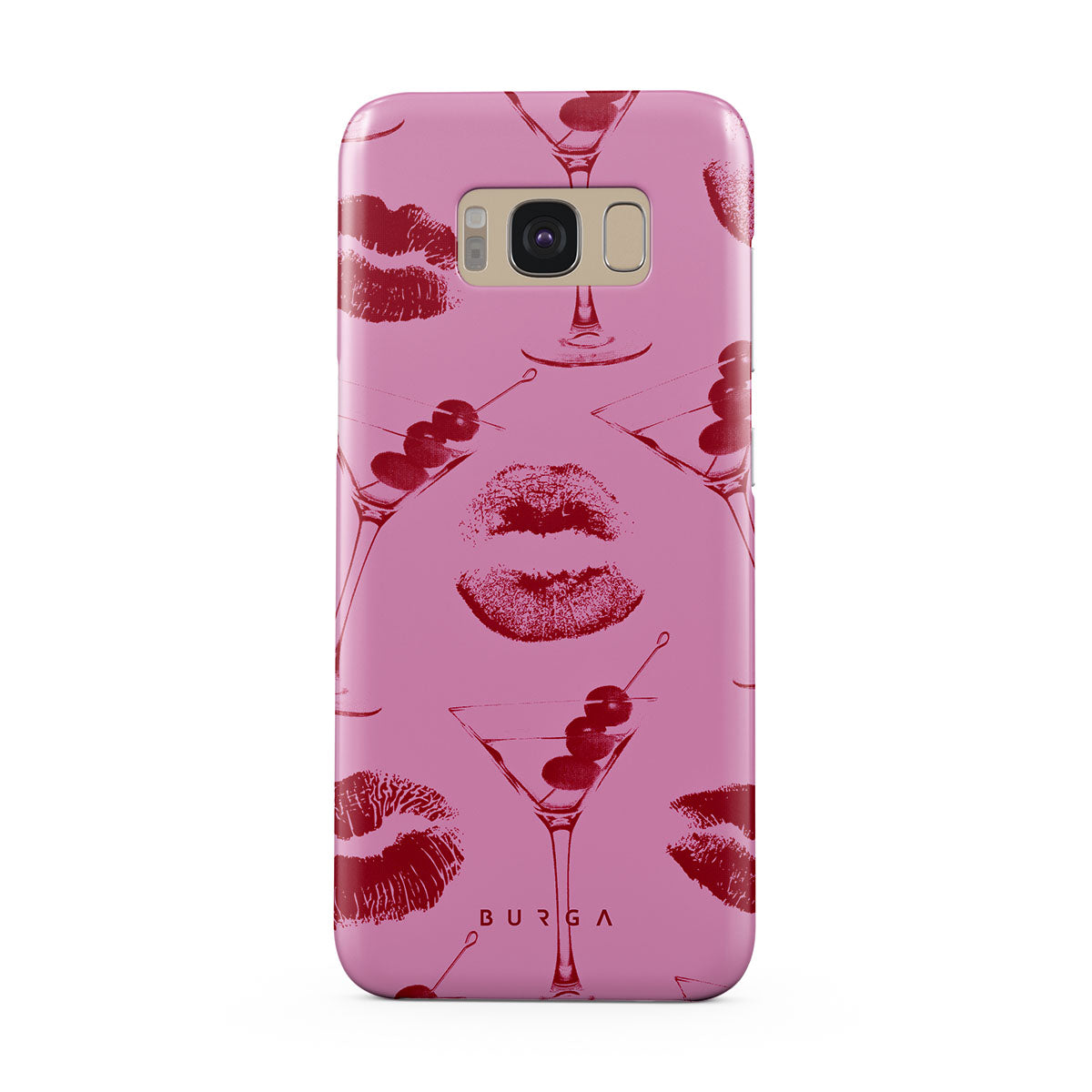 このデザインの特徴: 赤い唇、キス、カクテル グラス、マティーニ