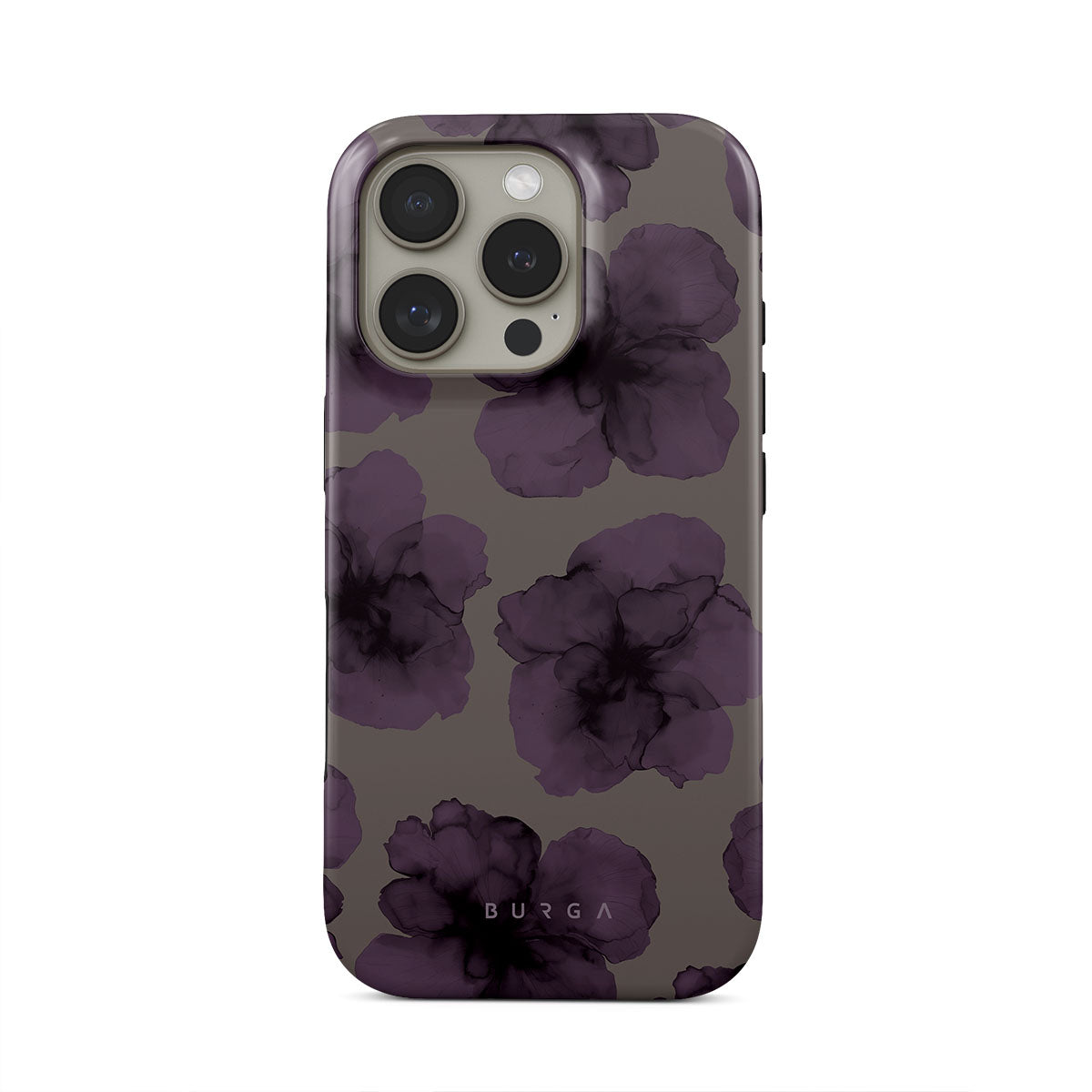 このデザインの特徴:深い色の花柄、紫色の花、すみれ色の花びら。