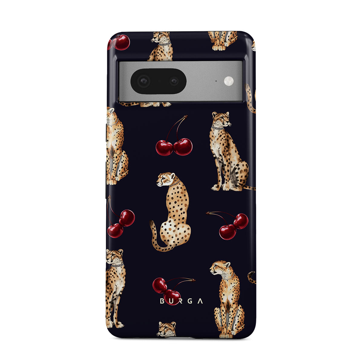 このデザインの特徴:チーターパターン、チーター、チェリー