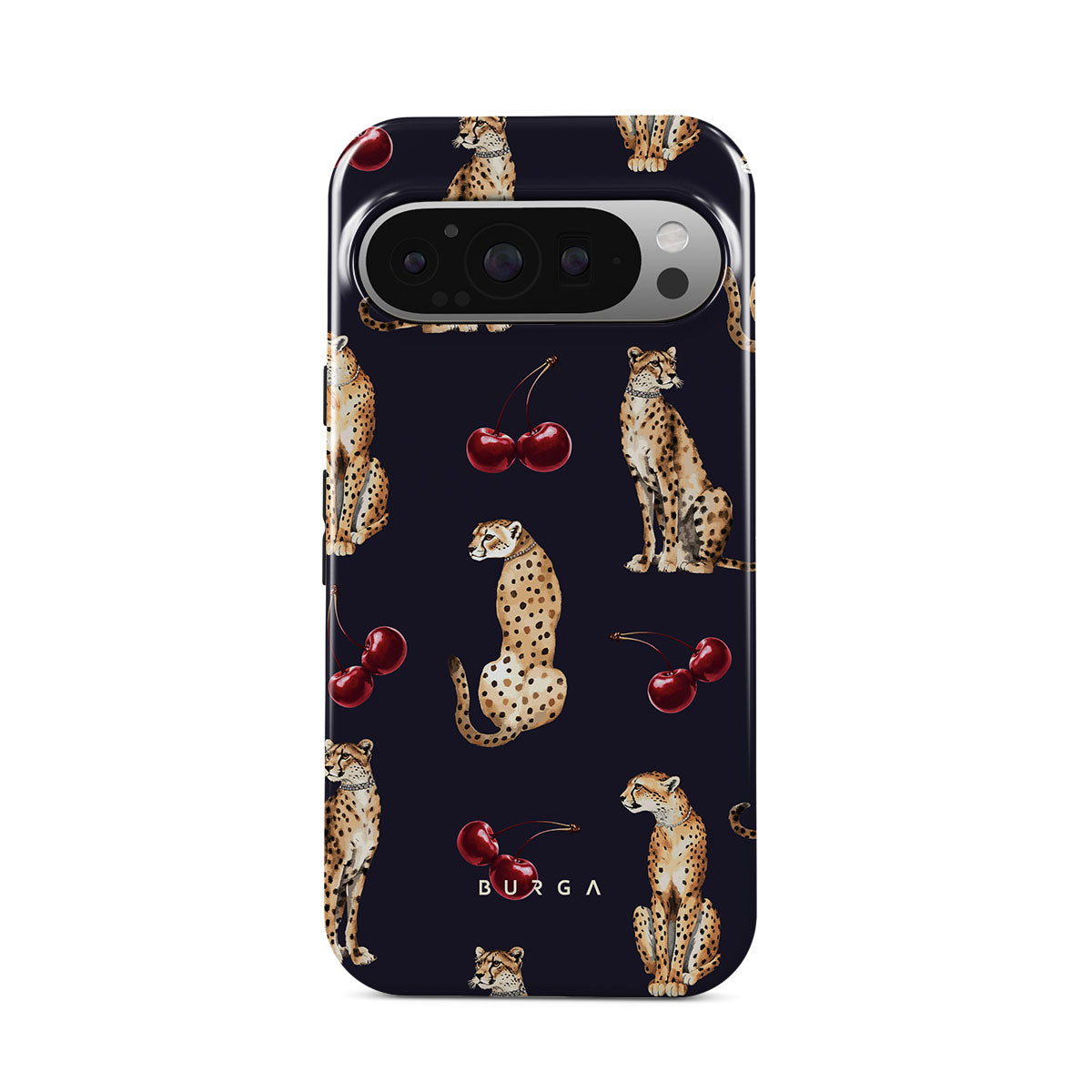 このデザインの特徴:チーターパターン、チーター、チェリー