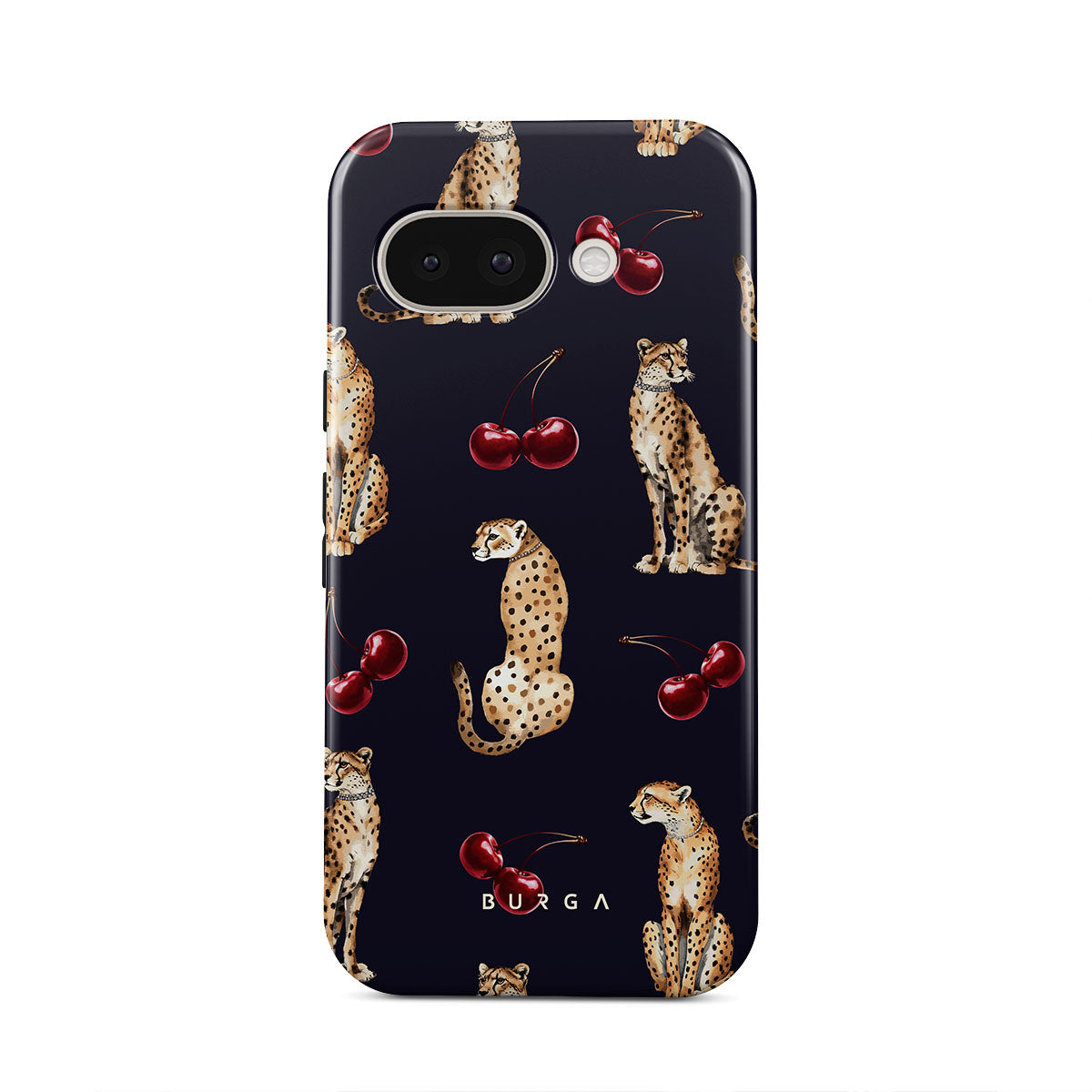 このデザインの特徴:チーターパターン、チーター、チェリー