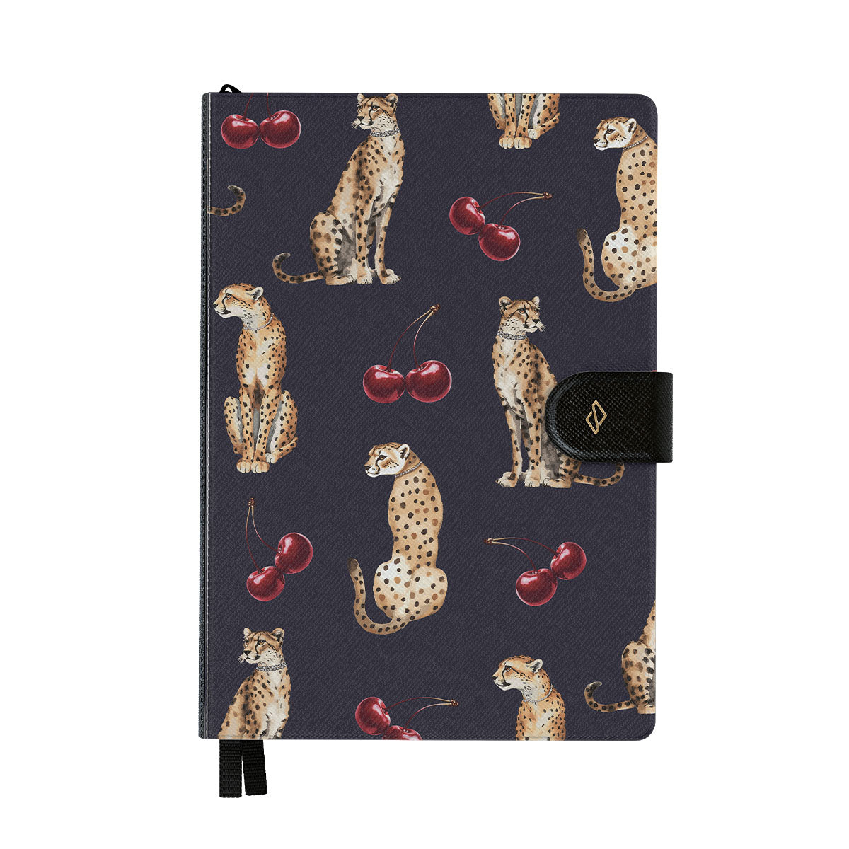 このデザインの特徴:チーターパターン、チーター、チェリー.