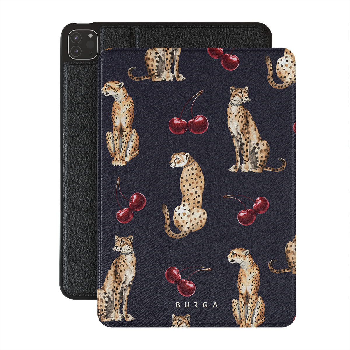 このデザインの特徴:チーターパターン、チーター、チェリー