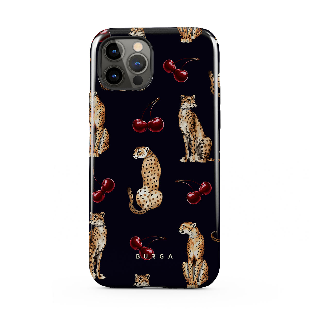 このデザインの特徴:チーターパターン、チーター、チェリー