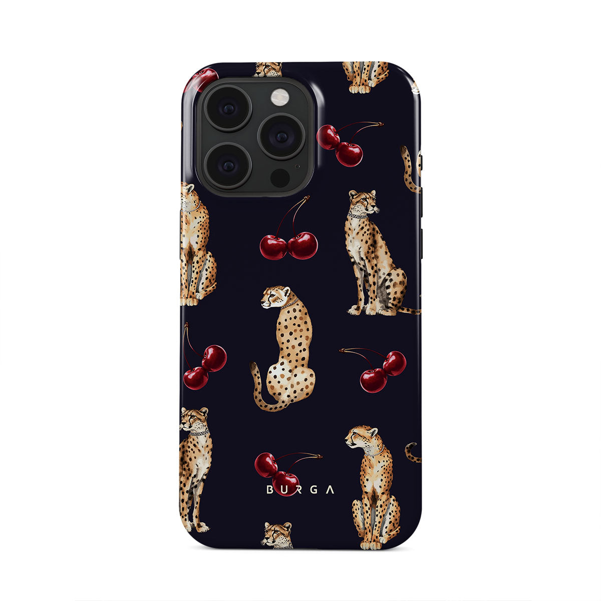 このデザインの特徴:チーターパターン、チーター、チェリー