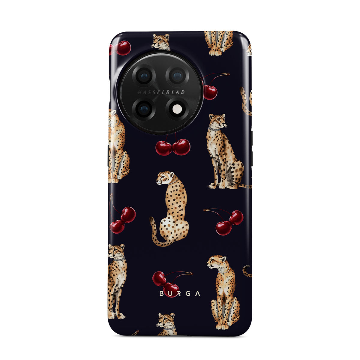 このデザインの特徴:チーターパターン、チーター、チェリー