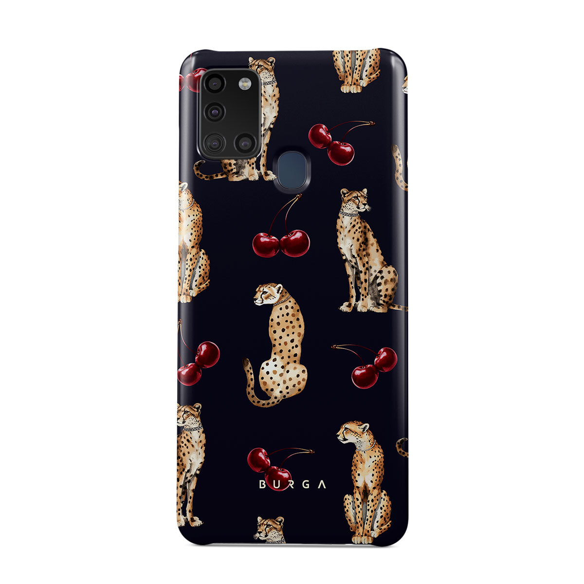 このデザインの特徴:チーターパターン、チーター、チェリー