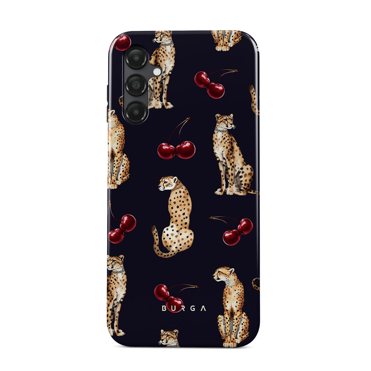 このデザインの特徴:チーターパターン、チーター、チェリー