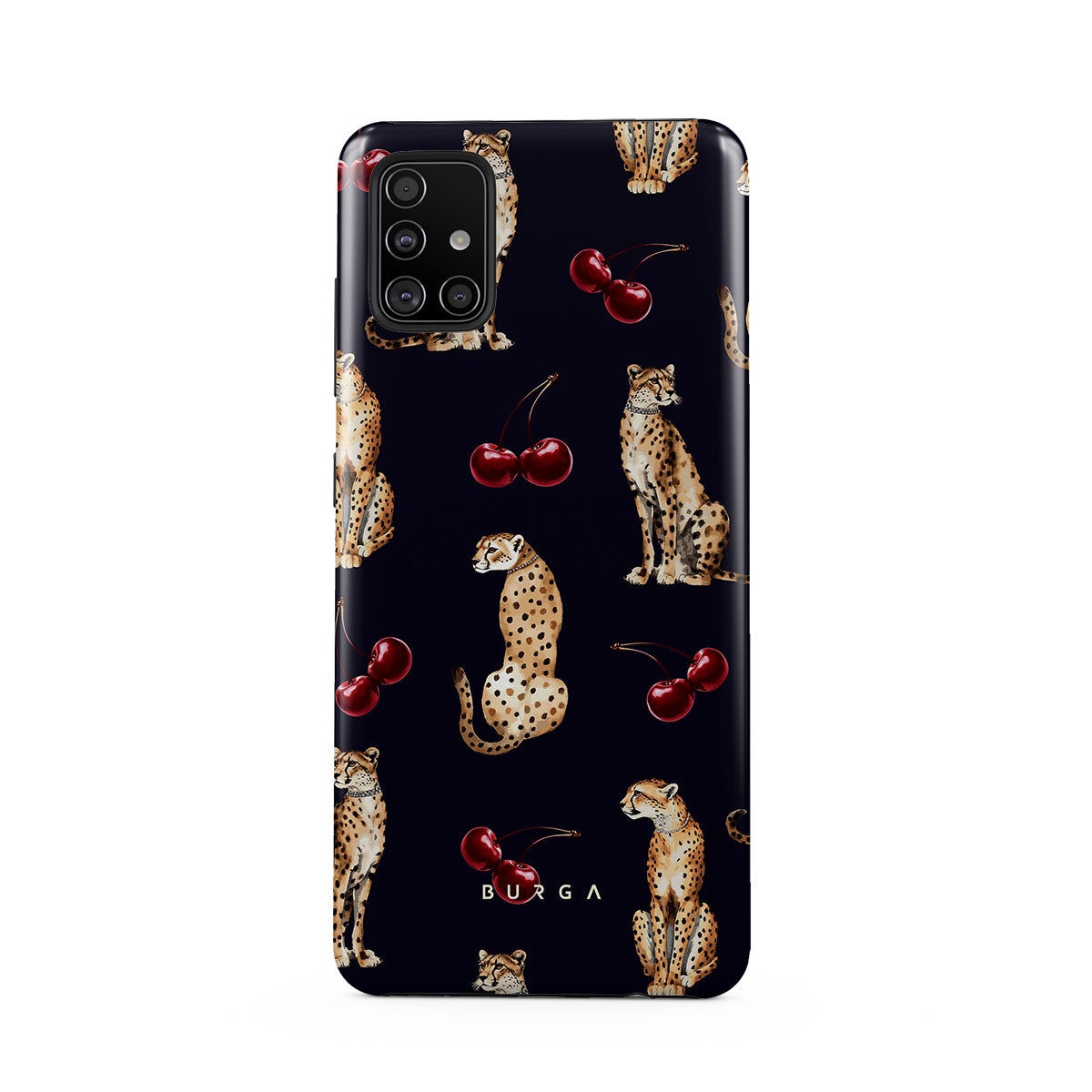 このデザインの特徴:チーターパターン、チーター、チェリー