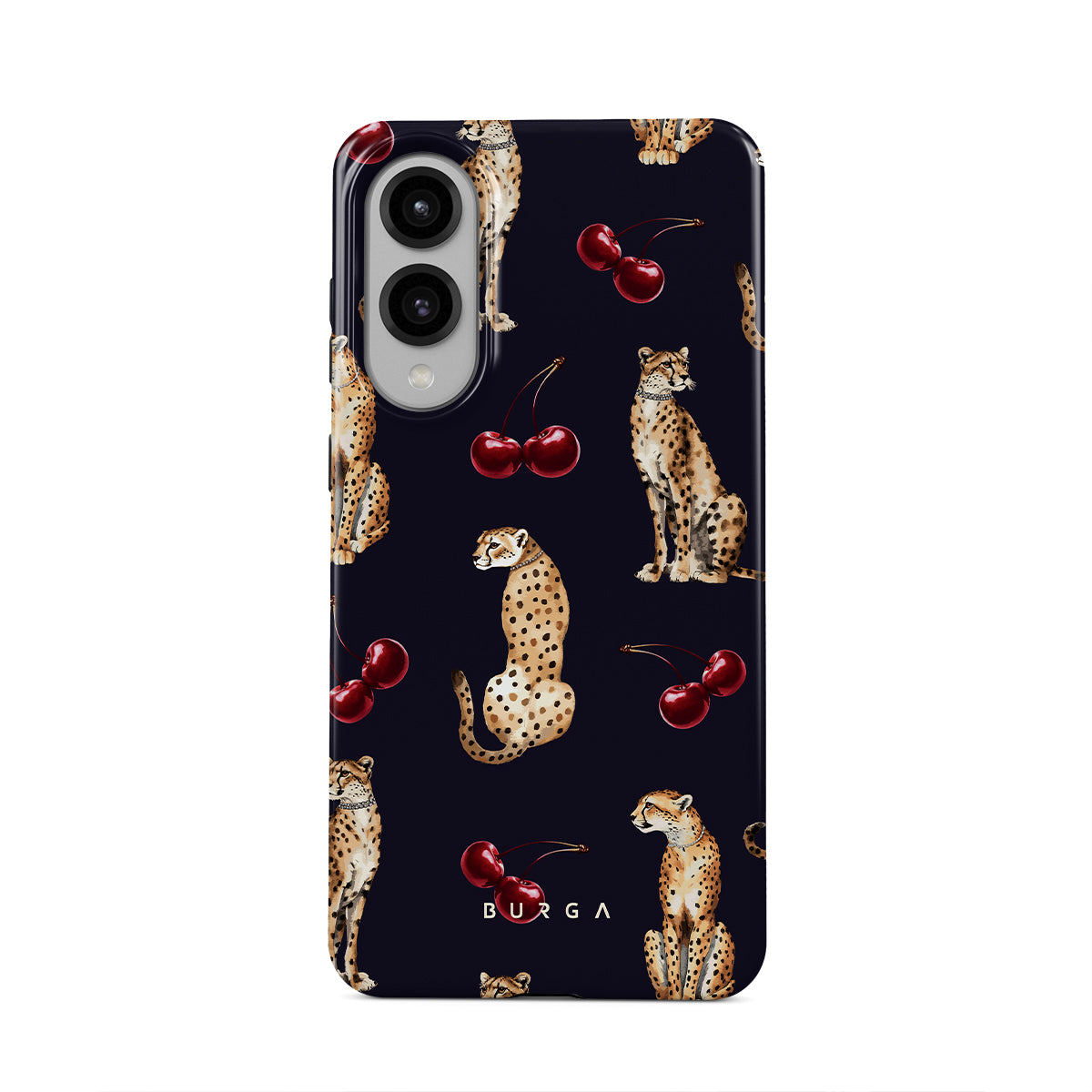 このデザインの特徴:チーターパターン、チーター、チェリー