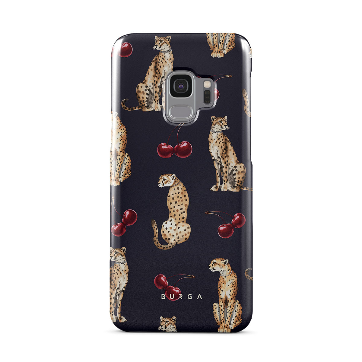 このデザインの特徴:チーターパターン、チーター、チェリー