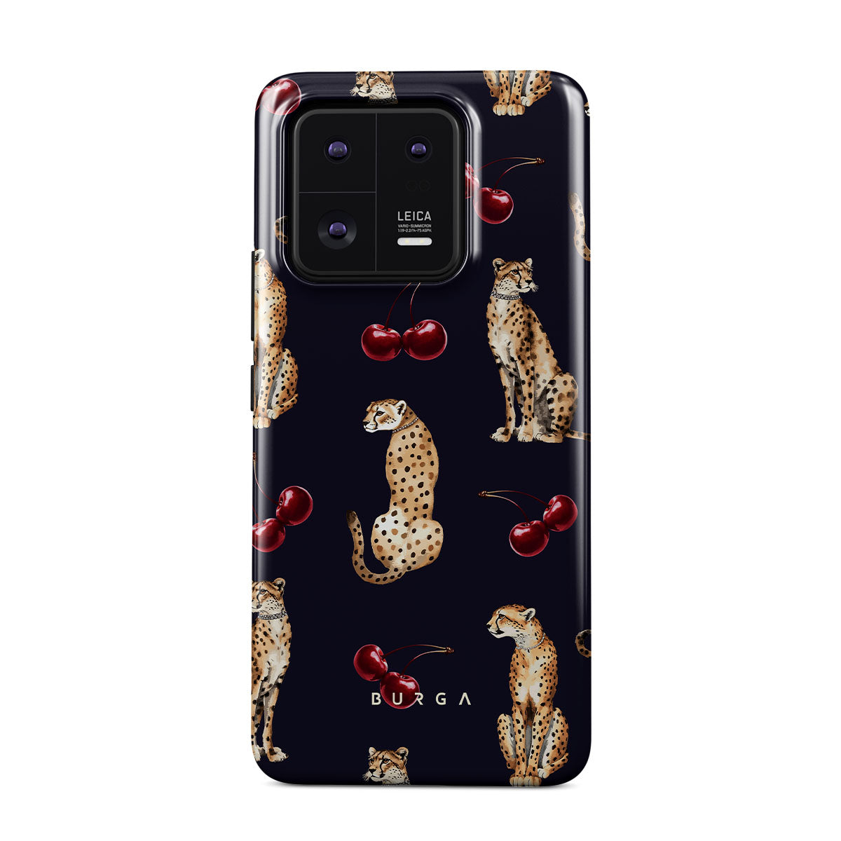 このデザインの特徴:チーターパターン、チーター、チェリー