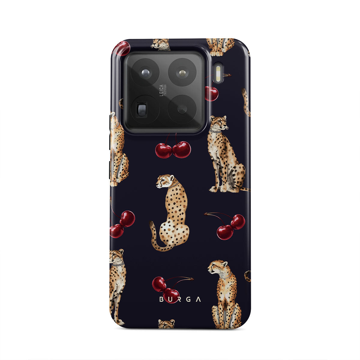 このデザインの特徴:チーターパターン、チーター、チェリー