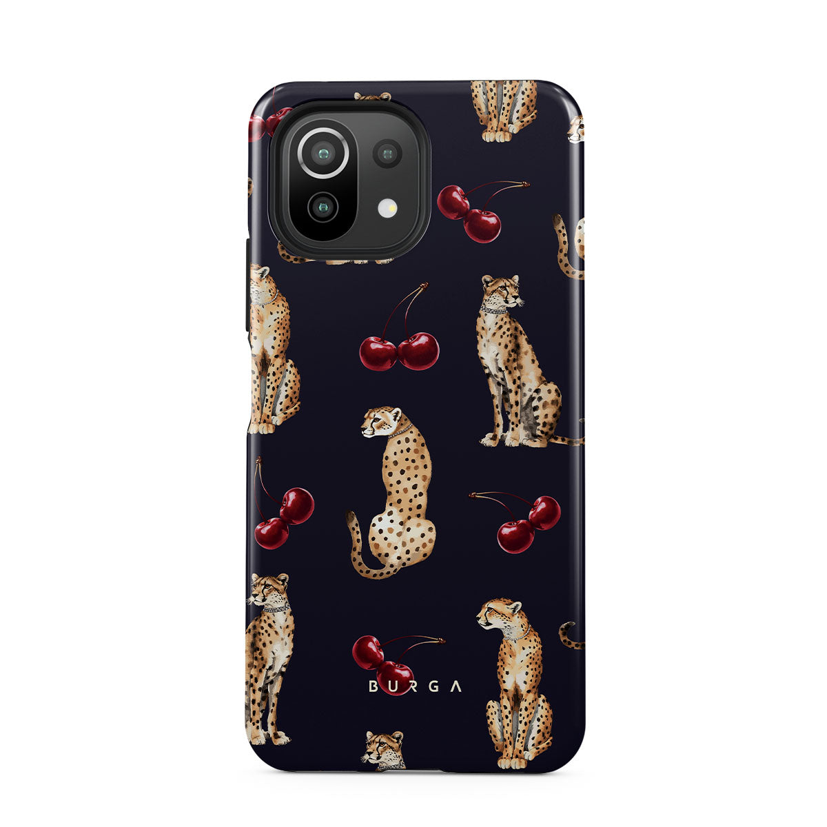 このデザインの特徴:チーターパターン、チーター、チェリー