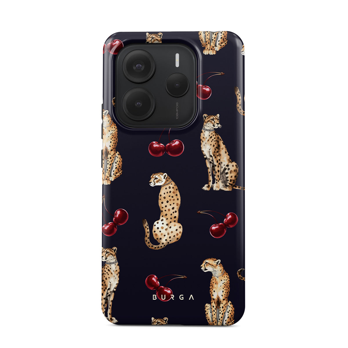 このデザインの特徴:チーターパターン、チーター、チェリー