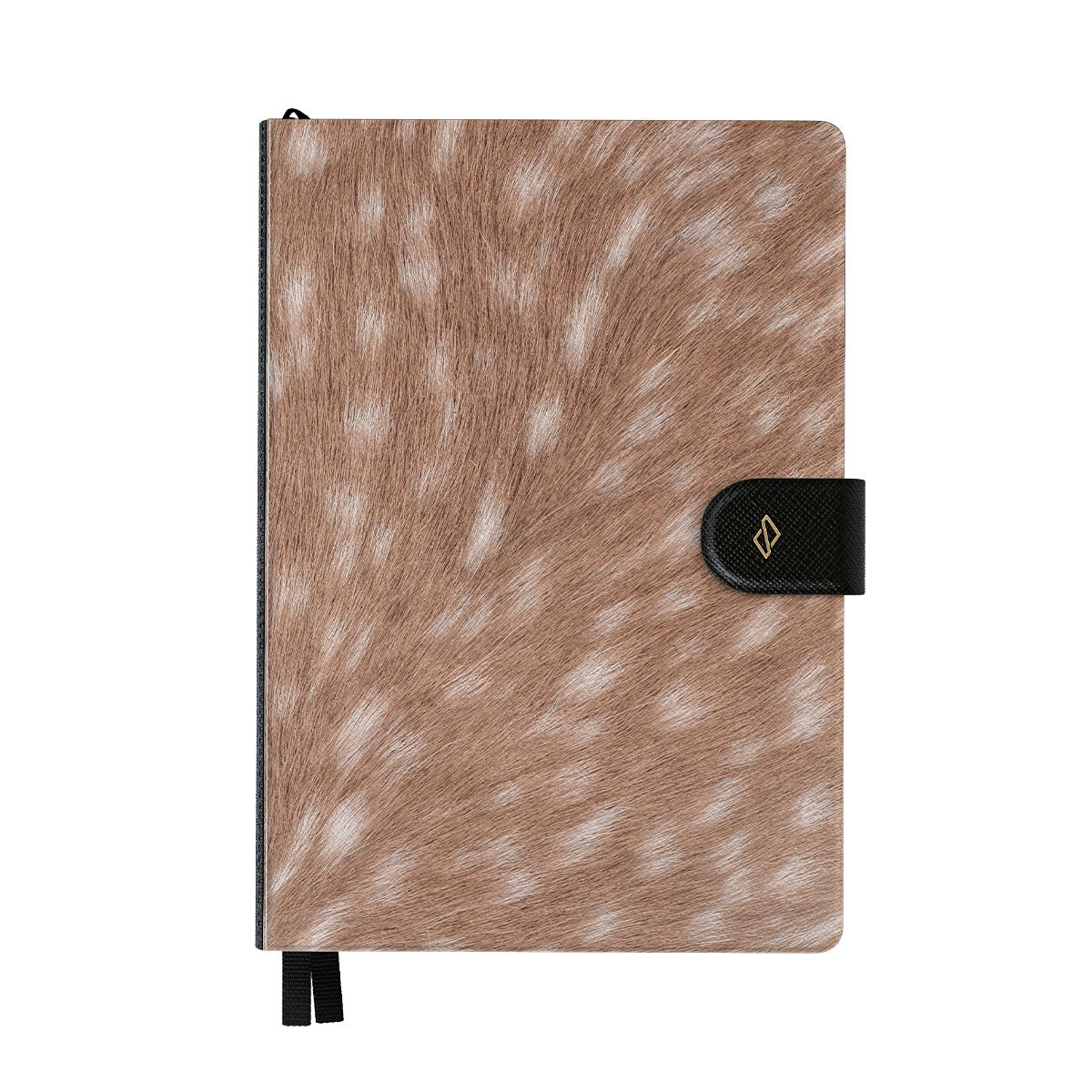 日付が書かれていないミニマリストなデザインで、手帳・スケジュール帳・ダイアリーとして使えます。表紙のハードカバーには、心地よい手触りのヴィーガンサフィアーノレザーを使用。スリムな磁気べえると付きの頑丈な手帳で、コーヒーをこぼしたり、うっかり手帳を落としたりしても安心です。