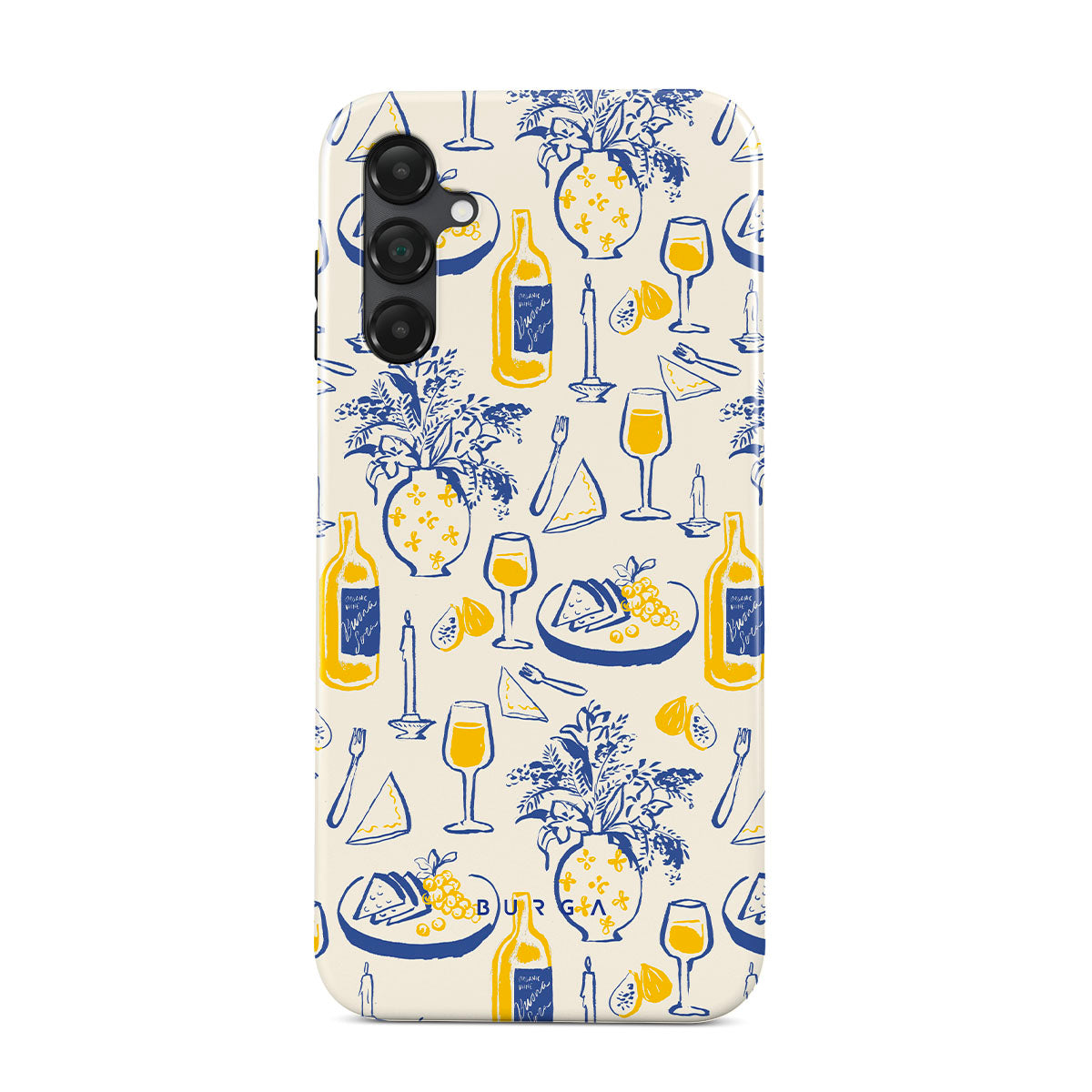このデザインの特徴:ワインボトル、花、チーズプラッター、キャンドル、カトラリー、レモネード