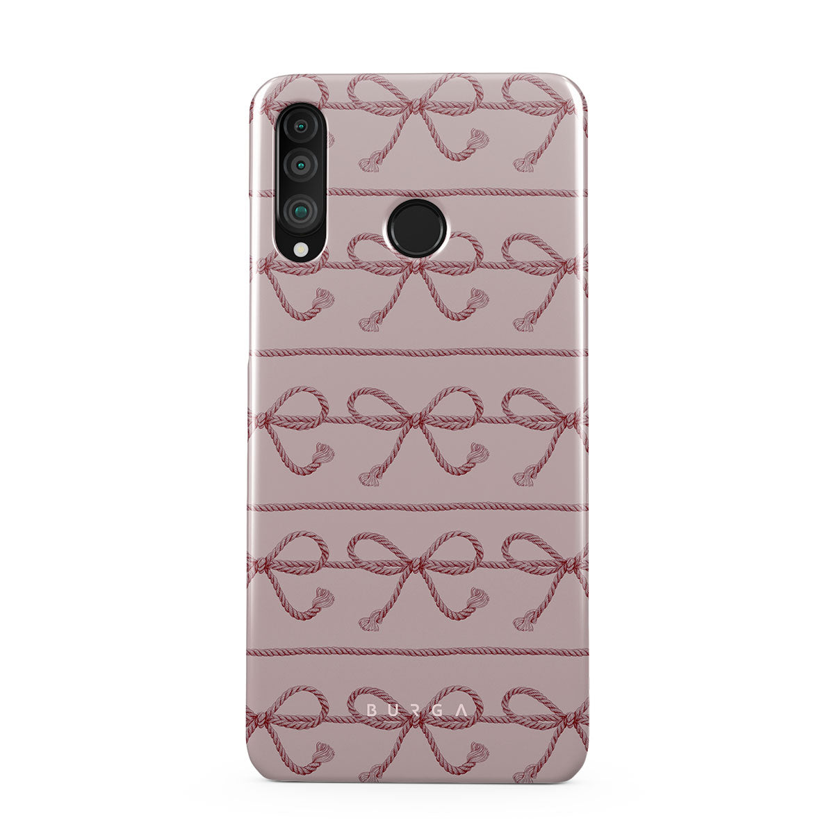 このデザインの特徴:ピンクのちょう結び、ピンクの背景、ロープ、遊び心あふれる柄