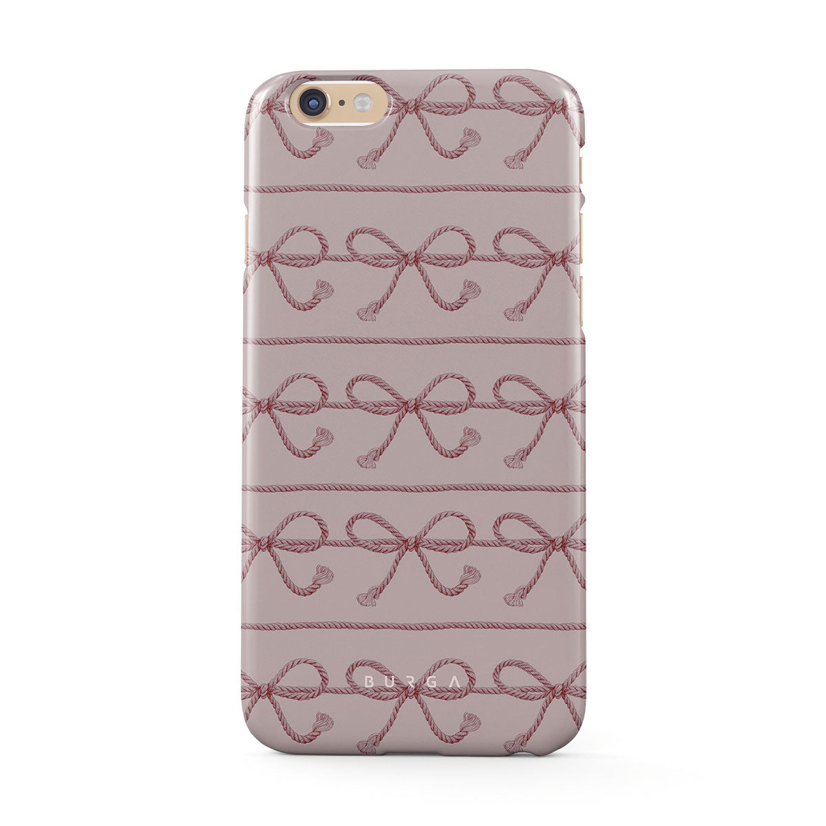 このデザインの特徴:ピンクのちょう結び、ピンクの背景、ロープ、遊び心あふれる柄