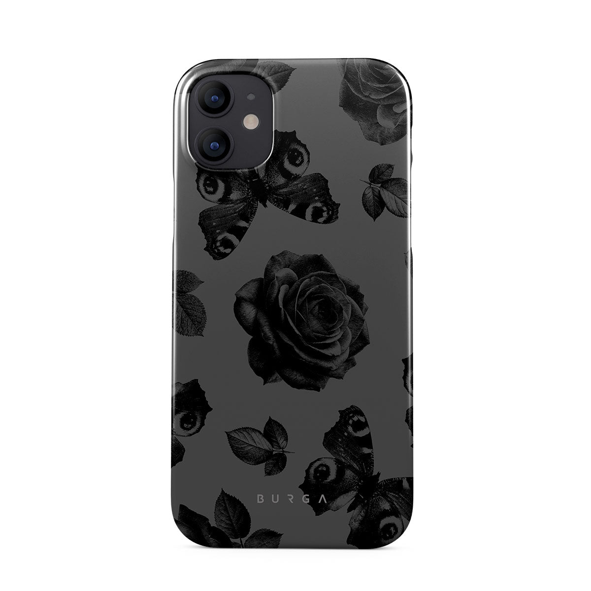 このデザインの特徴:黒いバラ、ゴシック調の花柄、落ち着いた色合い。