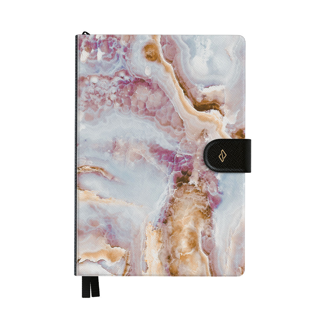 日付が書かれていないミニマリストなデザインで、手帳・スケジュール帳・ダイアリーとして使えます。表紙のハードカバーには、心地よい手触りのヴィーガンサフィアーノレザーを使用。スリムな磁気べえると付きの頑丈な手帳で、コーヒーをこぼしたり、うっかり手帳を落としたりしても安心です。