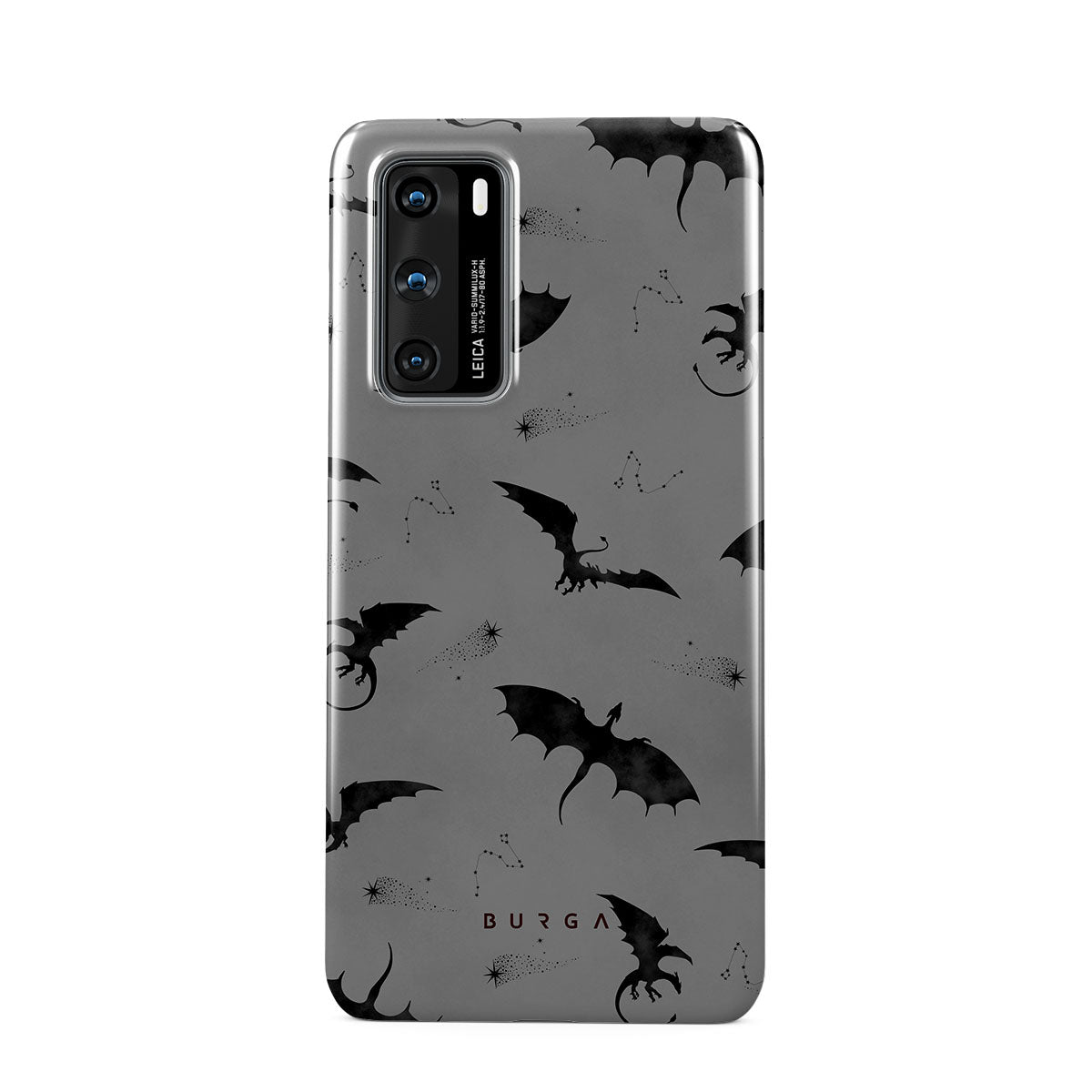 このデザインの特徴:コウモリ、竜、灰色の空、夜空、影の生物。