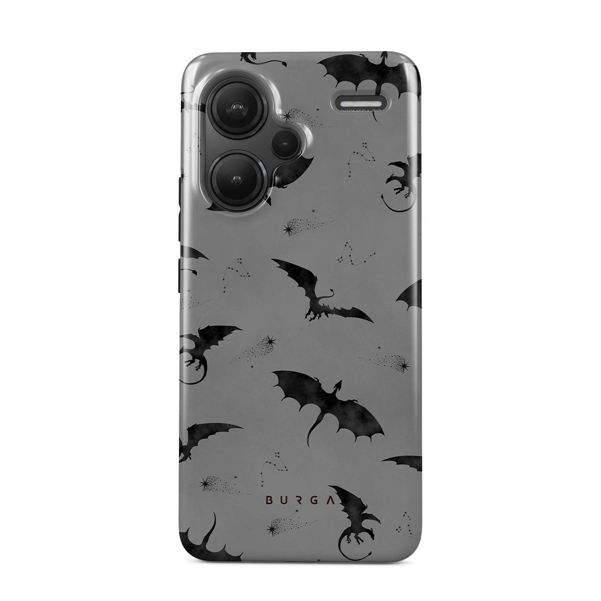 このデザインの特徴:コウモリ、竜、灰色の空、夜空、影の生物。